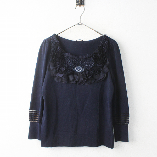 :COTTO コトゥー 胸元フリル フラワー レース ニット プルオーバー