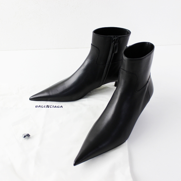 : バレンシアガ 531751 ポインテッドトゥ レザーショートブーツ