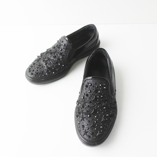 JIMMY CHOO(ジミーチュウ):スター スタッズ エナメル レザー スリッポン シューズ