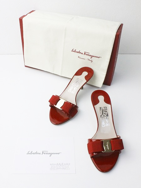 Salvatore Ferragamo(リプロダクション オブ ファウンド):GLORY ヴァラ リボン エナメル サンダル
