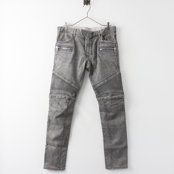 BALMAIN HOMME(バルマンオム):S6HT572D423 USED加工 バイカーグレーストレッチデニムパンツ