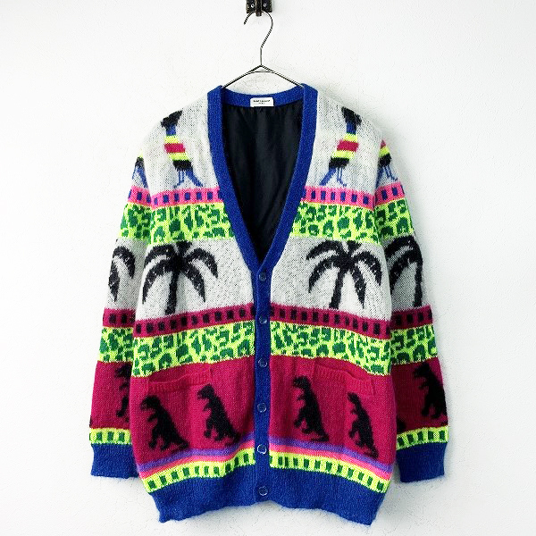 SAINT LAURENT PARIS(サンローラン パリ):411365 Y1NQ1 ヤシの木 恐竜ニット カーディガン