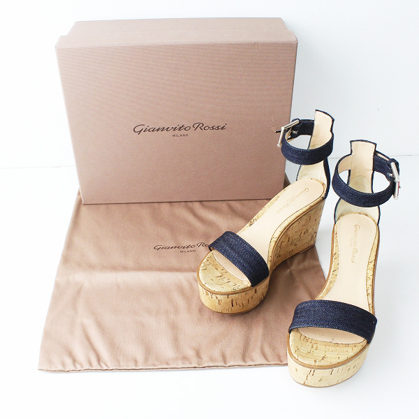 GIANVITO ROSSI(ジャンビト ロッシ):デニム ウェッジ サンダル