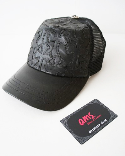 CHROME HEARTS(クロムハーツ):セメタリークロス ブラックレザー トラッカーキャップ