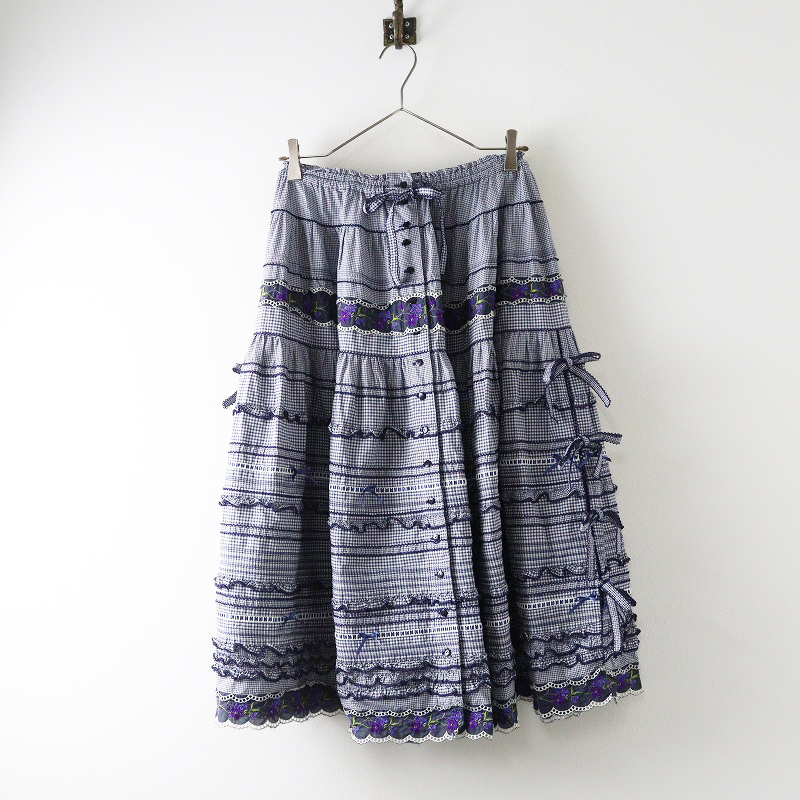 ピンクハウス PINK HOUSE 綿レース使いアンティークギンガムスカート