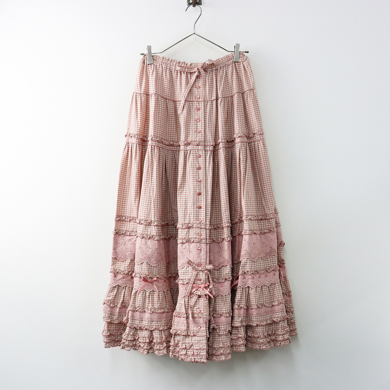 ピンクハウス PINK HOUSE ピコフリルギンガムフラワーパッチワークティアードスカート