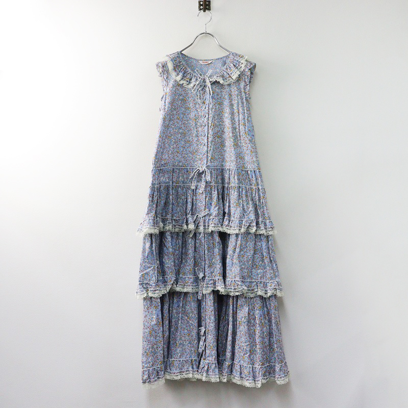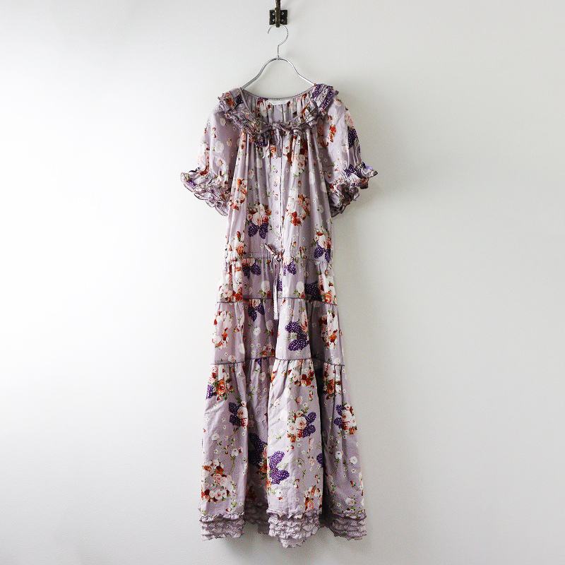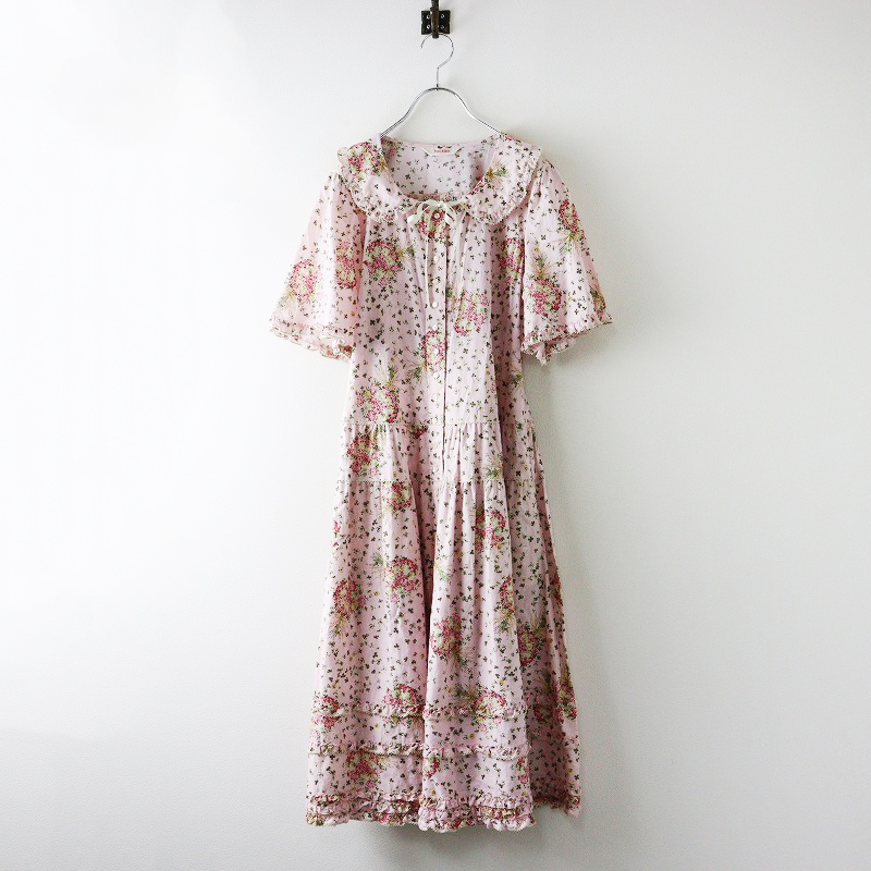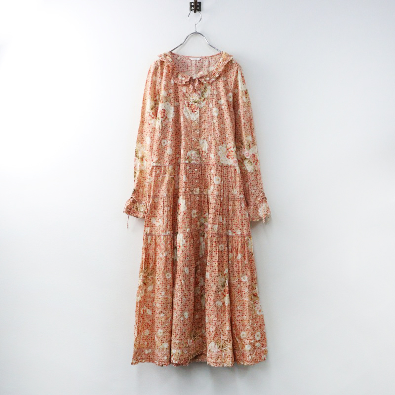ピンクハウス PINK HOUSE 綿ローン フェイバリットブーケ 前開き ピコフリル ティアードギャザーワンピース