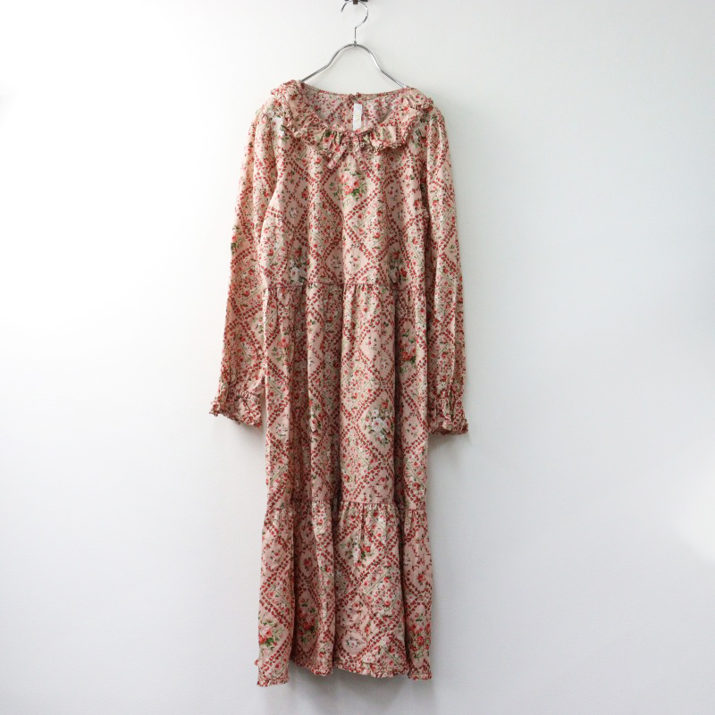 ピンクハウス PINK HOUSE 薔薇格子プリントミディワンピース