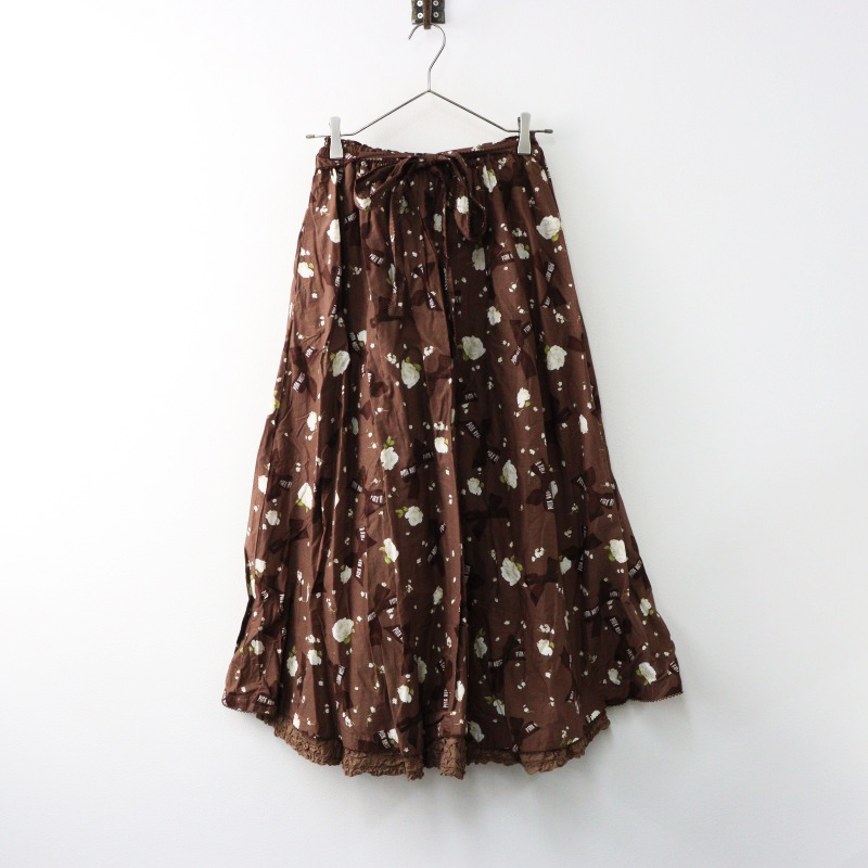 ピンクハウス PINK HOUSE 綿ローン リボン柄プリント 裾ピコフリル ロングスカート