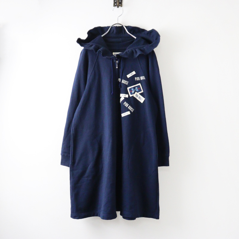 ピンクハウス PINK HOUSE ギンガムハートワッペン付きロングパーカー