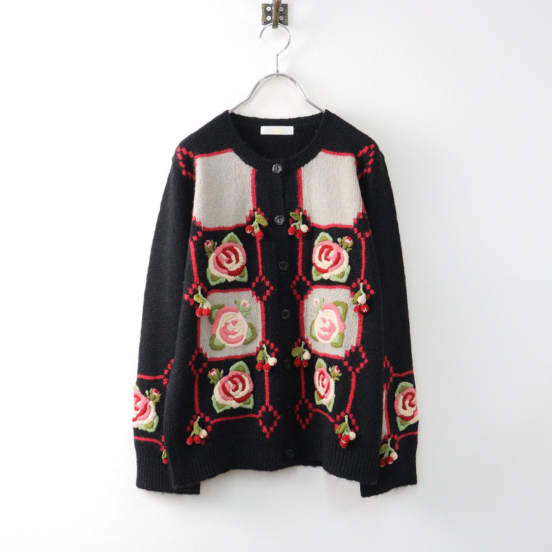 ピンクハウス PINK HOUSE ローズモチーフパッチワーク風ニットカーディガン