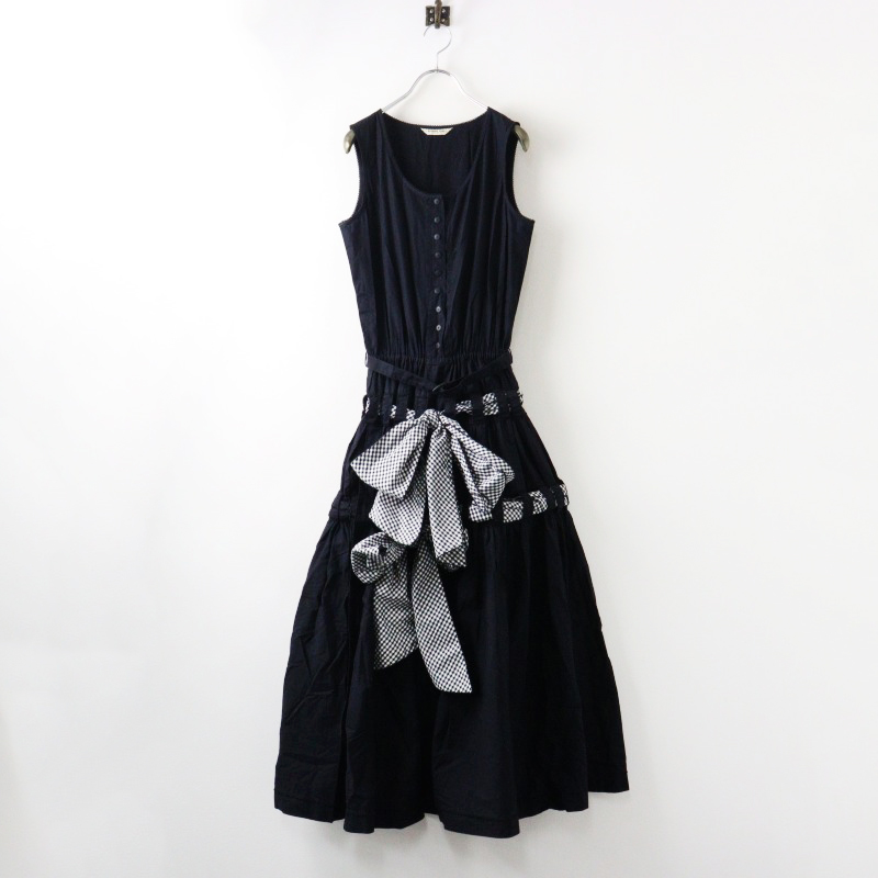 カネコイサオ KANEKO ISAO コットン リボン ノースリーブロングワンピース