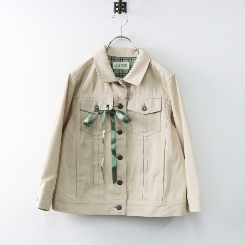 ピンクハウス PINK HOUSE White Cloverリース&sleeping rabbit刺繍デニムジャケット