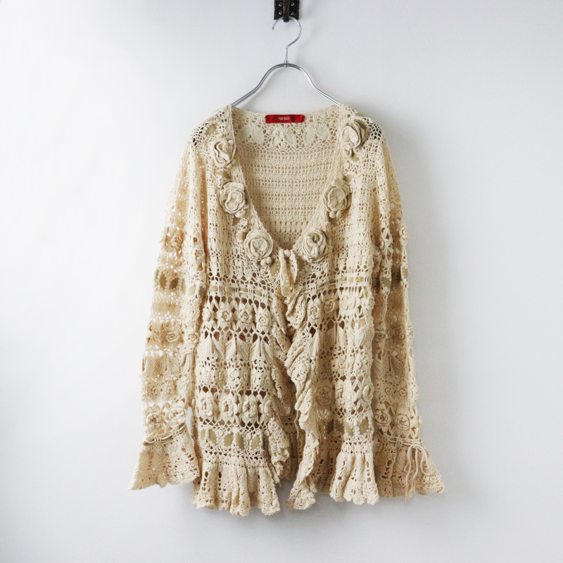 ピンクハウス PINK HOUSE コットン フラワーモチーフ クロシェニット カーディガン