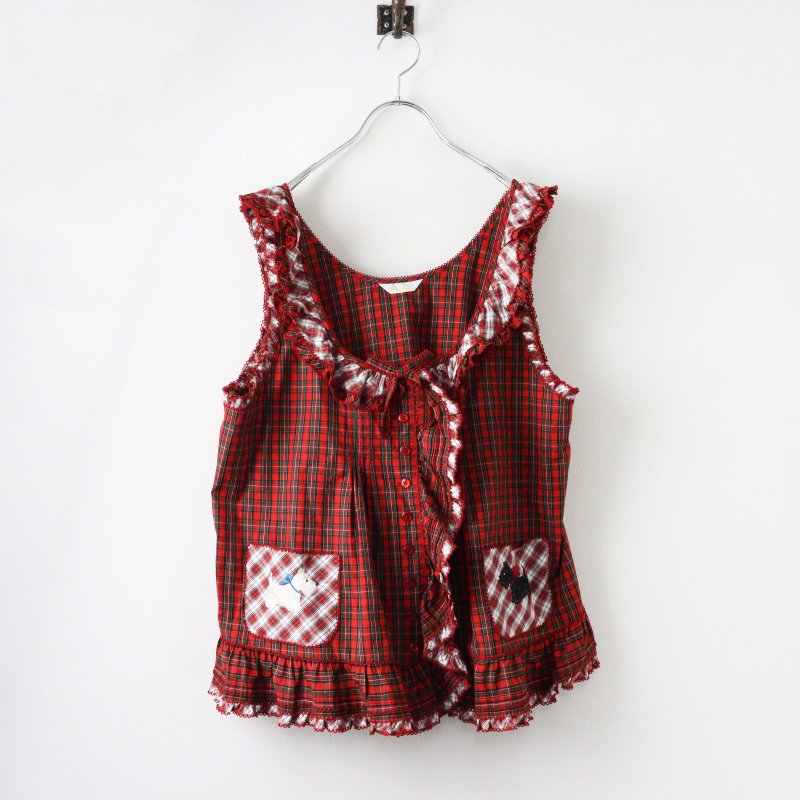 ピンクハウス PINK HOUSE スコッチテリア刺繍タータンチェックベスト