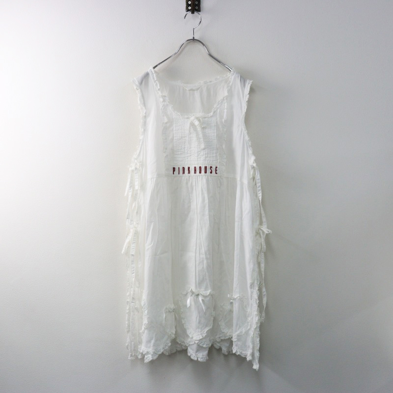 ピンクハウス PINK HOUSE ロゴ刺繍 フリル タブリエ /オフホワイト トップス ブラウス