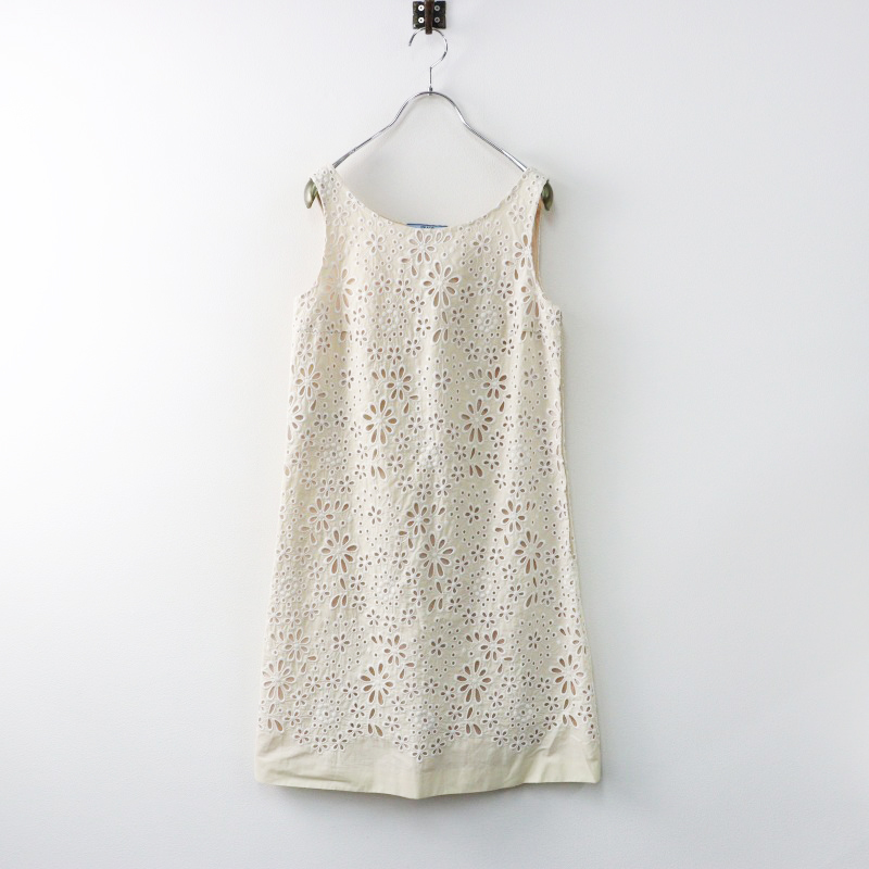 プラダ PRADA フラワーカットワークレースノースリーブワンピース