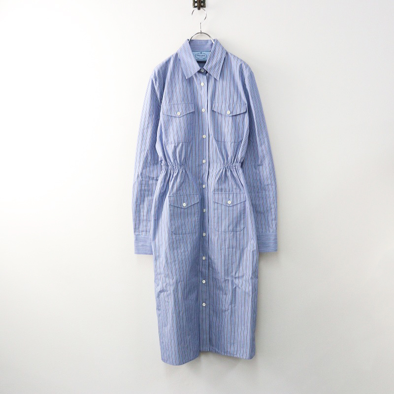 イタリア製 2024AW プラダ PRADA ストライプ シャンブレー ドレス