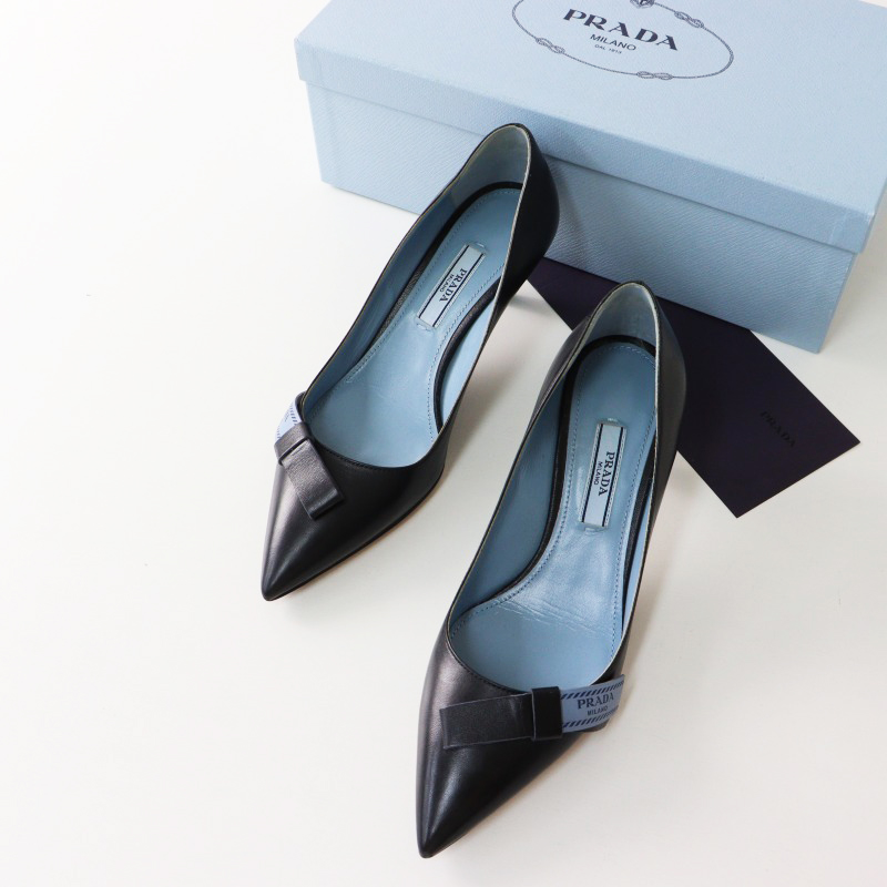 プラダ PRADA ロゴリボン ポインテッドトゥ ヒールパンプス