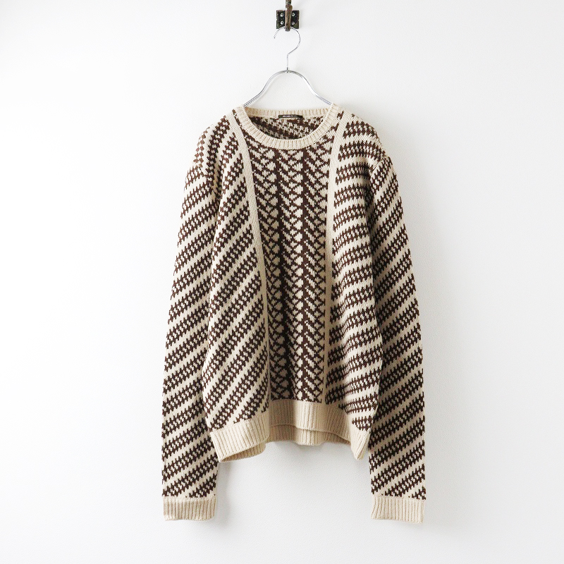 メンズ イタリア製 プラダ PRADA カシミヤ100% 柄編み クルーネックニットプルオーバー