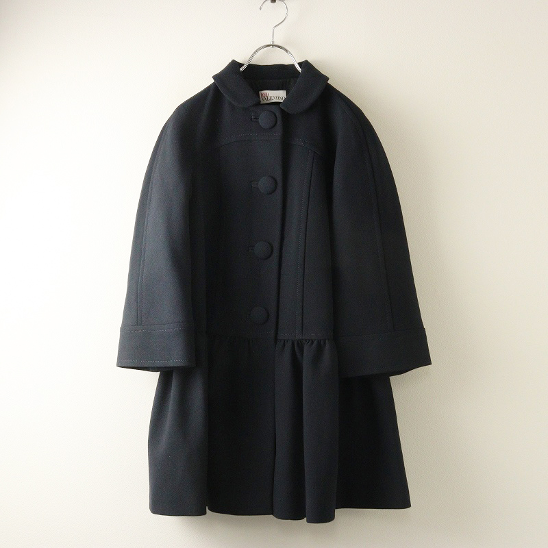 レッドヴァレンティノ RED VALENTINO コットンウール ラウンドカラー ギャザーミディコート