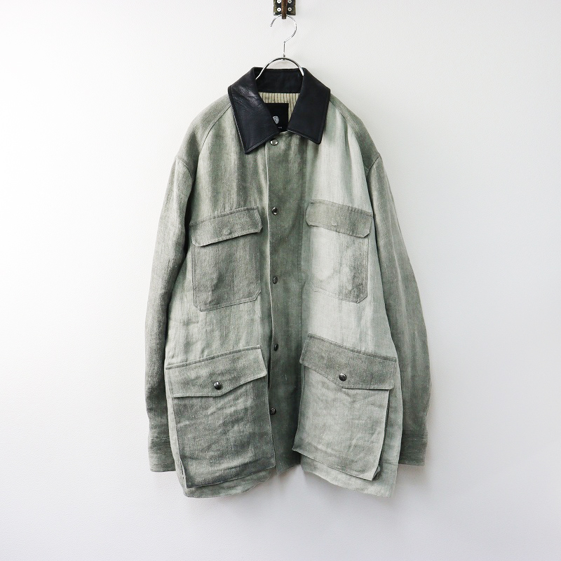 37,000円ブラミンク BLAMINK ラムレザー襟 リネン カバーオール ジャケット