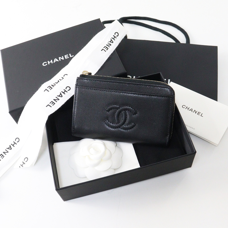 102,000円2022AW CHANEL シャネル ココマーク スモールウォレット AP3055 キャビアスキン 二つ折り ミニ財布