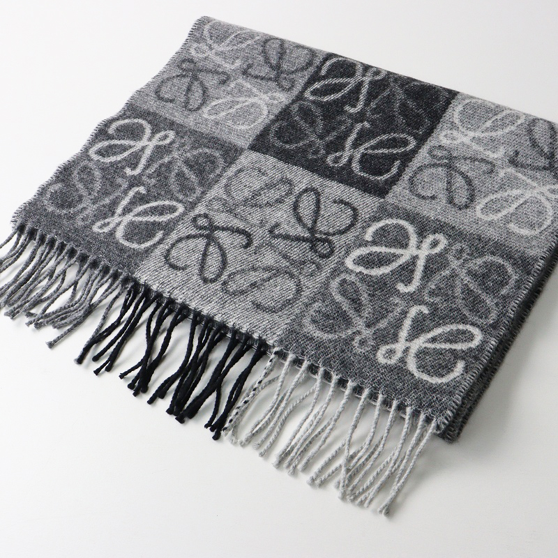 26,000円ロエベ LOEWE Cashmere Wool Anagram Scarf アナグラム切替 カシミヤウール フリンジマフラー