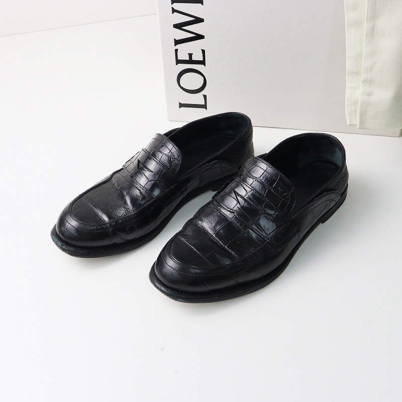 15,000円イタリア製 ロエベ LOEWE クロコ型押し 2WAY レザー ローファー
