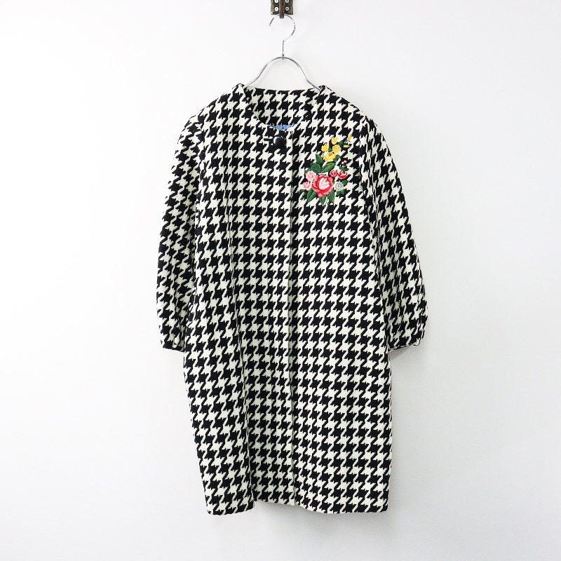 7,000円ロイスクレヨン Lois CRAYON ファーティペット付 受注 フラワー刺繍 千鳥格子 ノーカラーコート