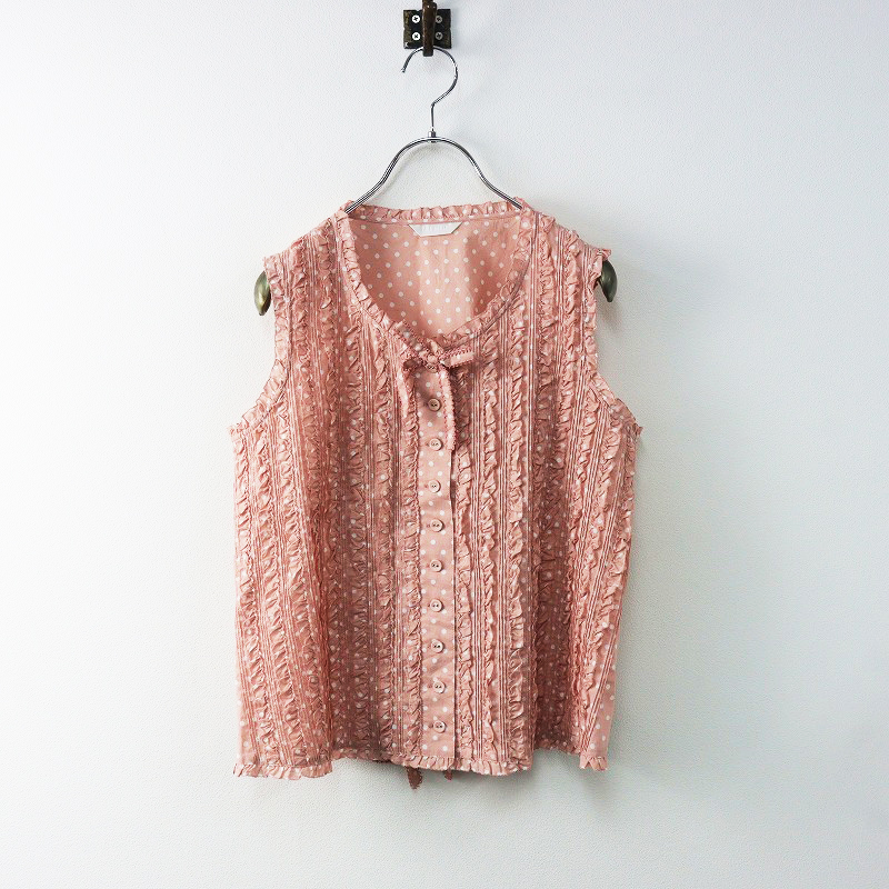 4,500円ピンクハウス PINK HOUSE ドットピコフリルピンタックノースリーブブラウス