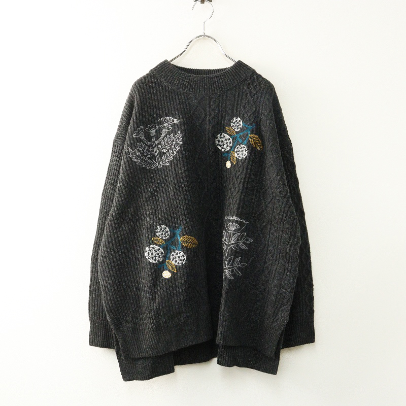 1,000円大きいサイズ スーパーハッカフィーユ super hakka feuille フラワー刺繍ニットプルオーバー